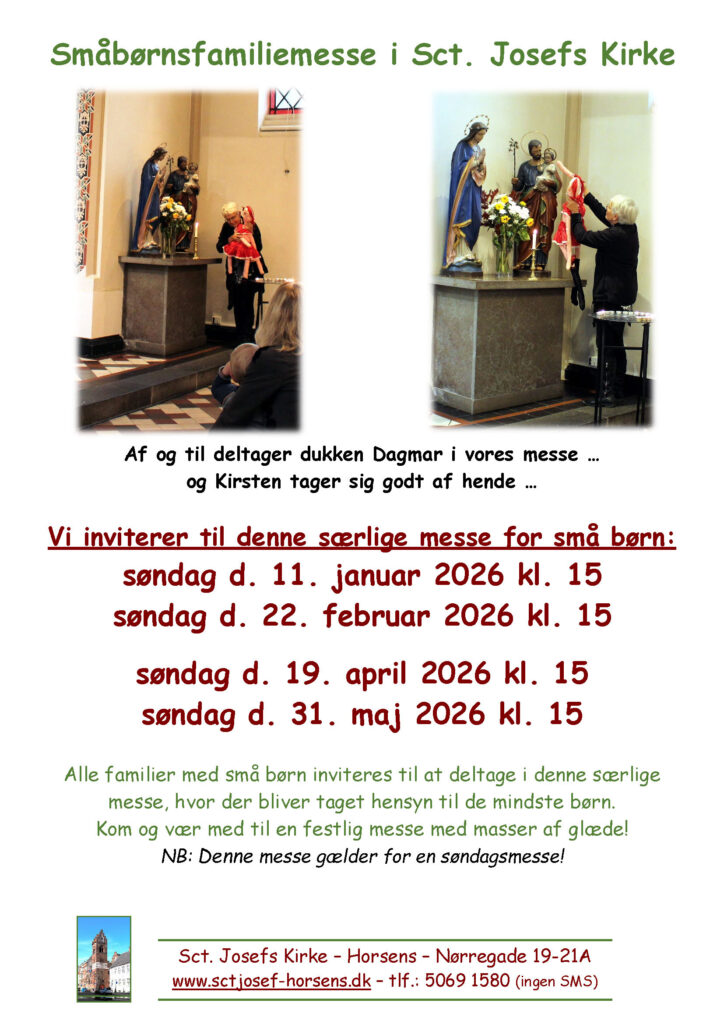Alle familier med små børn inviteres til at deltage i denne særlige messe, hvor der bliver taget hensyn til de mindste børn, og alle bliver opfordret til at være aktivt deltagende. Der vil være salmer og musik, der er specielt tilpasset aldersgruppen, og børnene får lov til at være med til at spille musik med rytmeinstrumenter.